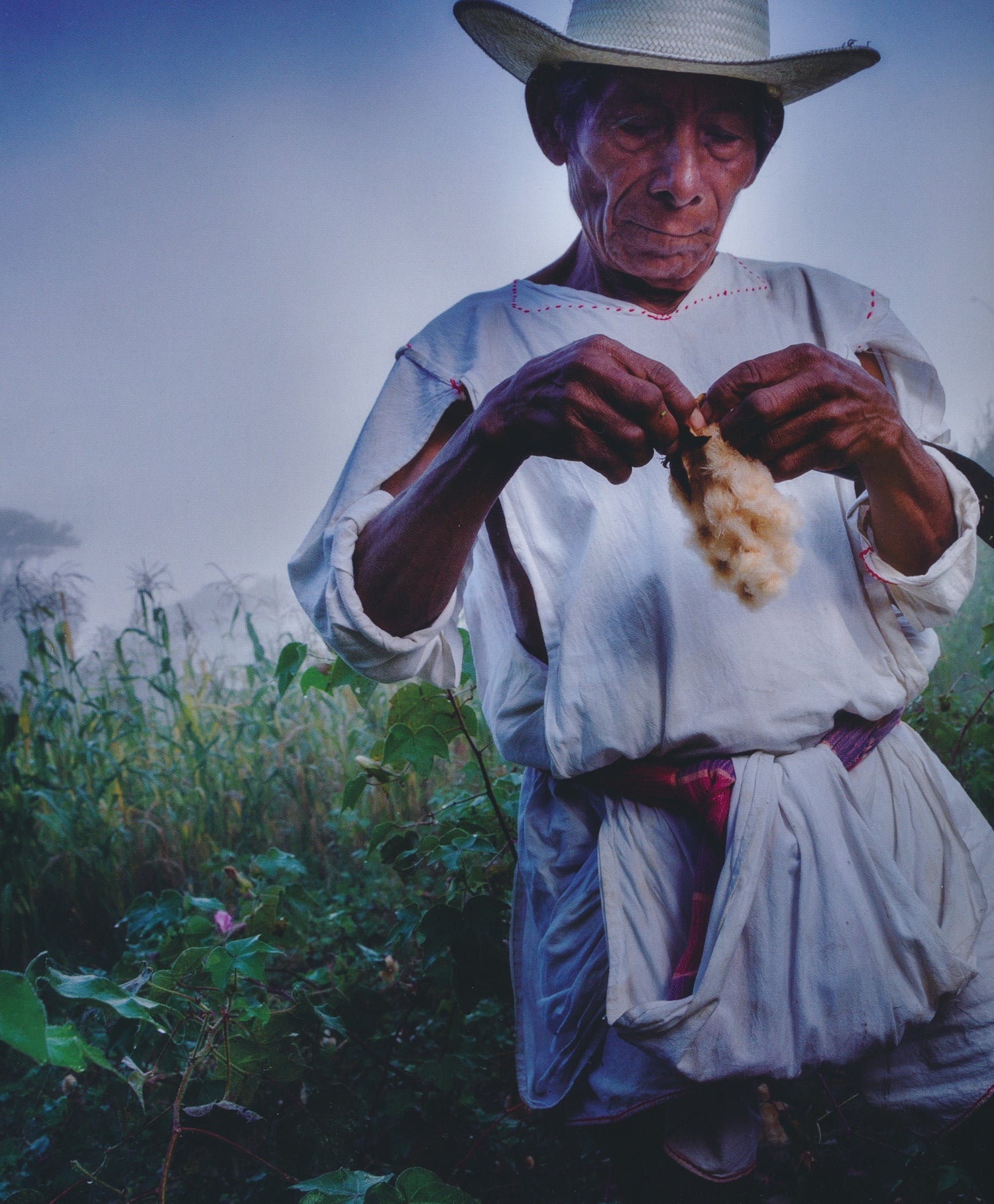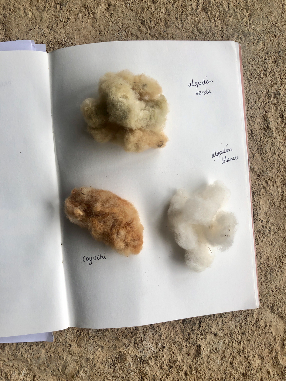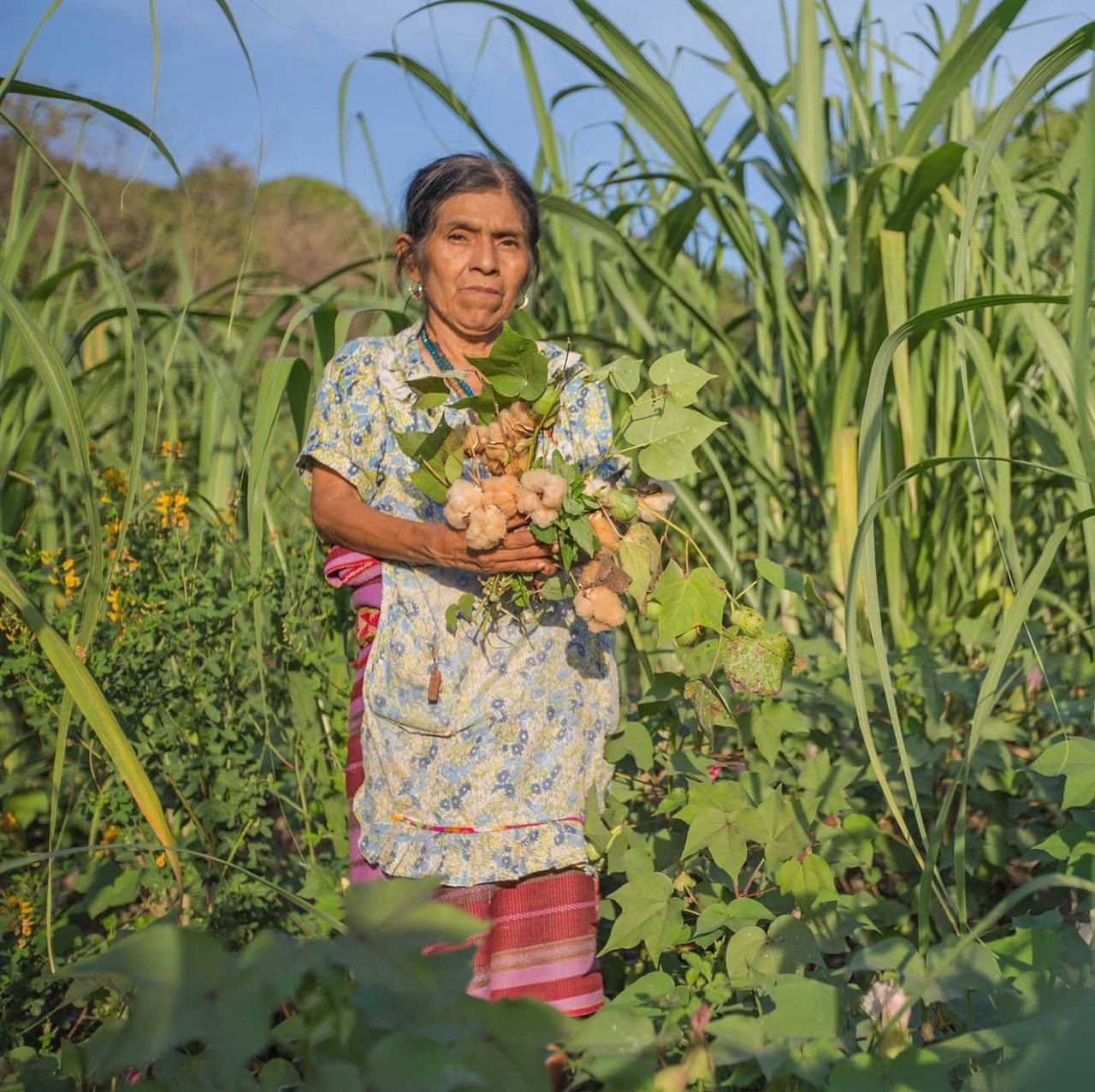 “We had all forgotten about this cotton here”, said Grandfather as he caressed the bloom. When he was young, this long-fiber brown, unique to the villages of this area, was still common, cultivated, spun, woven, and worn by hundreds of people. Long ago, the old-timers of Zacatepec also caressed the plants, watching them, listening to them, learning from them, talking to them, making trades: abundance for abundance. They created a cotton like no other, and it was woven into the lives of the people of Zacatepec in many ways.
